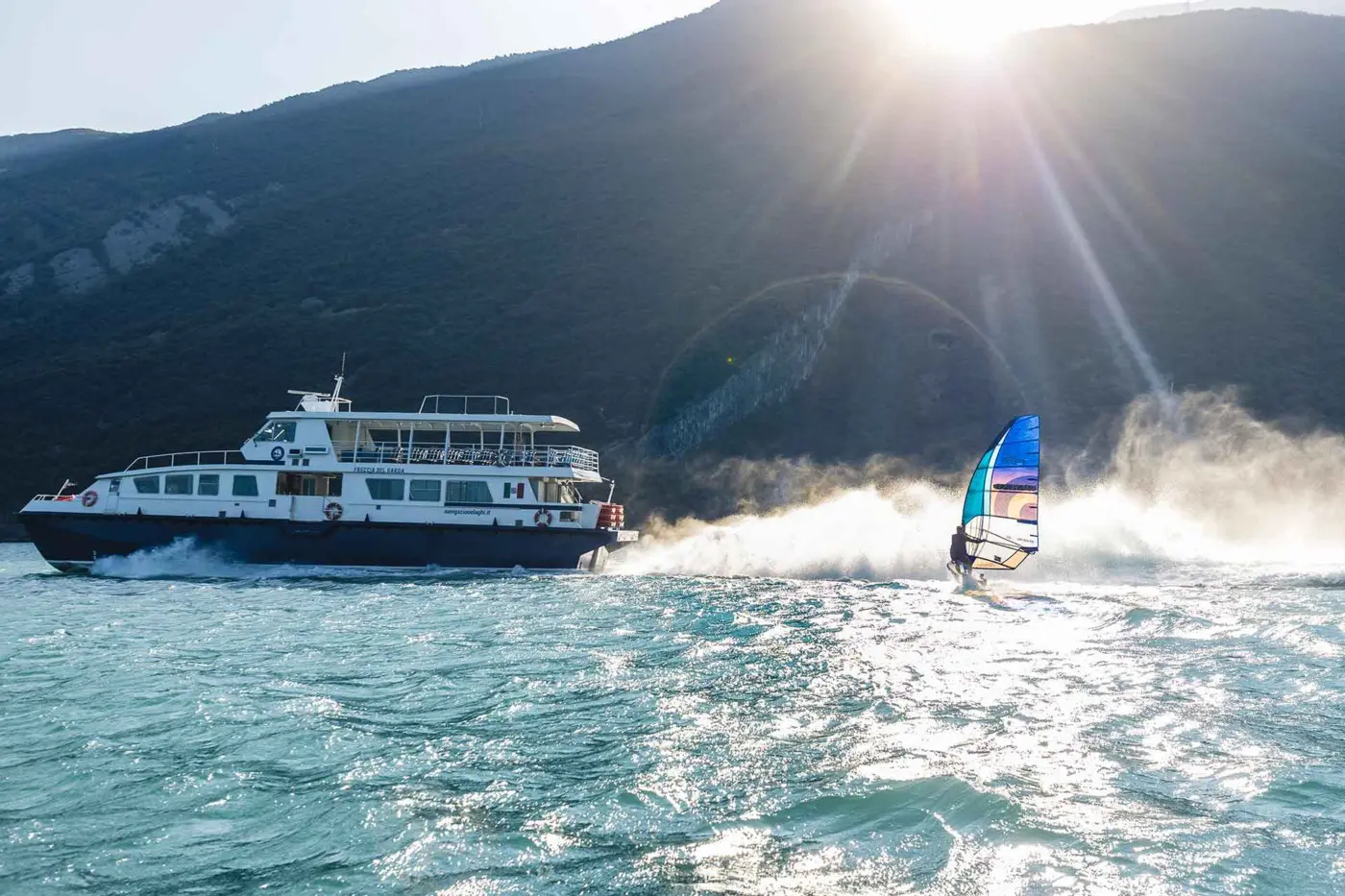 TRANSFORMING VEE FLOW along the bottom – the Vee is strongly pronounced in front of the mast base, decreasing between the foot straps and opening again towards the tail. Thus, the board rides high and loose, ironing out all the chop. The transforming V results in a curvy rail line which makes gybing smoother and helps to exit the turn at full speed.