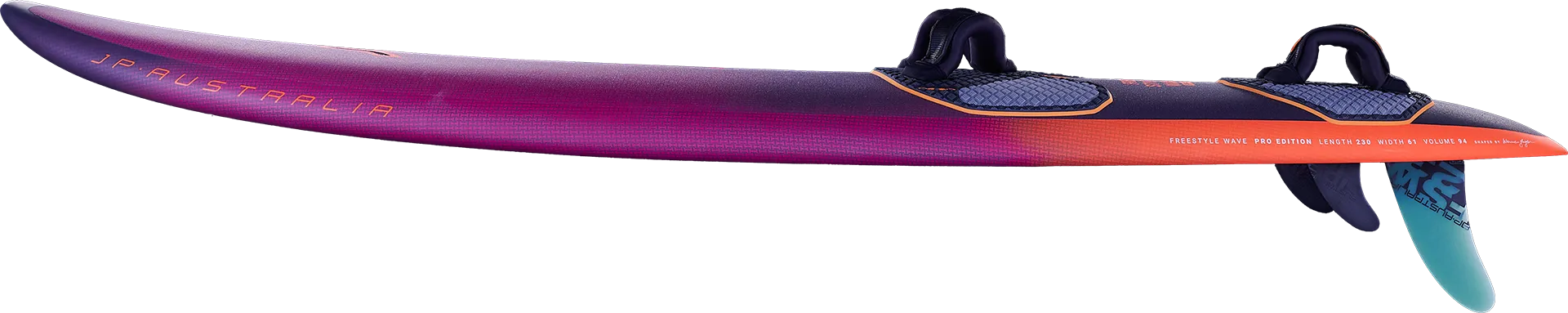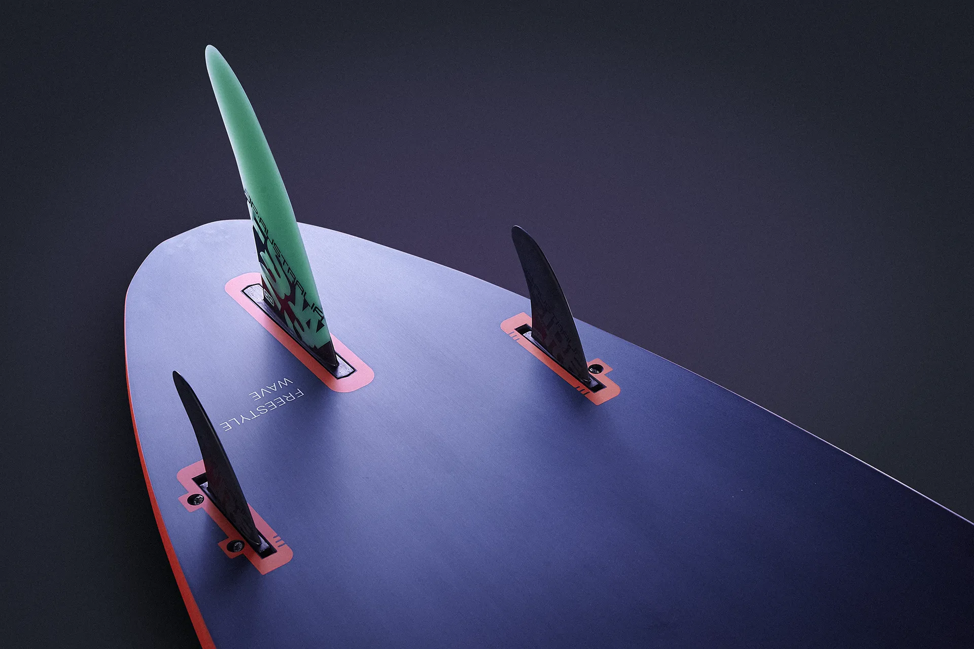 Hassle-free medium to high wind freeriding, bump and jump blasting, classic freestyle, high speed carving, wave sailing..... You name it and the Freestyle Wave has it in its bag. Still as all-round as ever, these lively and versatile shapes are JP’s fastest and most manoeuvrable all-water toys. This year, they come with a refined fin trim: by moving the side fins closer to the centre, we’ve boosted control and manoeuvrability without losing planing power.