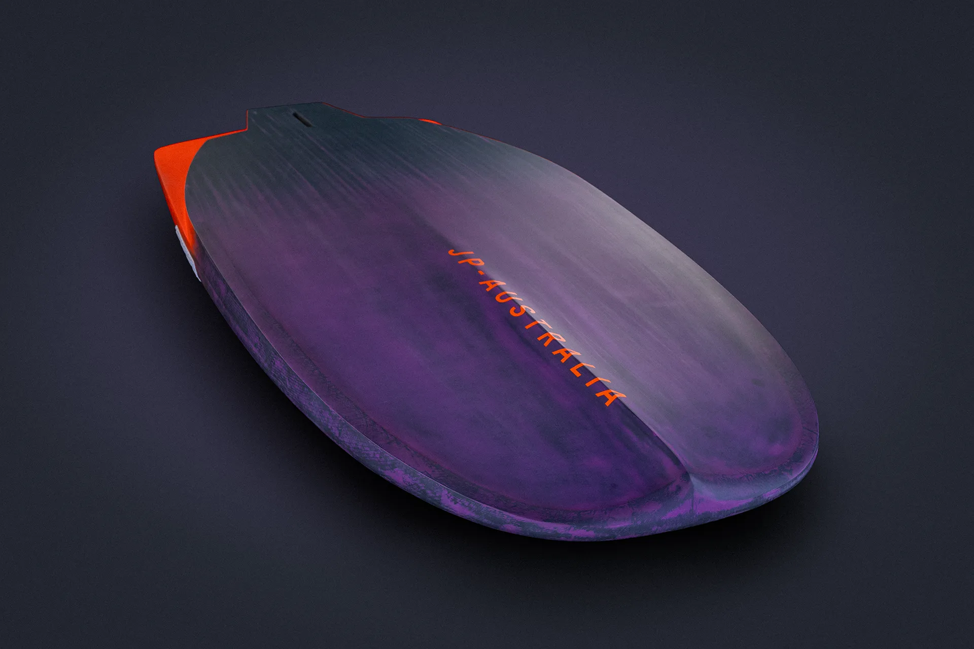 Foiling has become the heart of modern slalom racing, and JP boards continue to lead this evolution. With decades of experience, our shaper Werner Gnigler once again pushed the boundaries, refining the outline, the rails, and the deck profile to deliver a board that accelerate earlier, release cleaner, and remain steadier when fully powered. Every detail was reconsidered for the competitive edge – from airflow release to deck stance, from cut-outs to control.