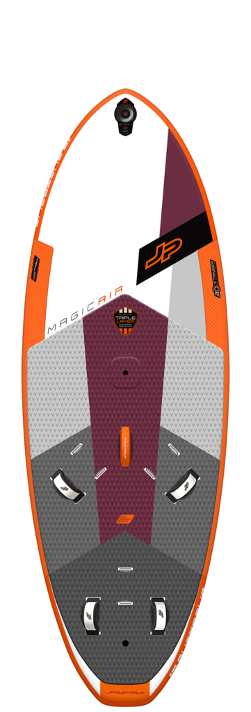The small inflatable windsurf design: The dimensions of the Magic AIR resemble those of a modern freeride shape and accordingly it has a similar performance and a short-board feeling. It addresses the intermediate to advanced sailor with mainly planing on his mind. Nevertheless, it has more volume than a composite board of the same size, making it easier and more forgiving.