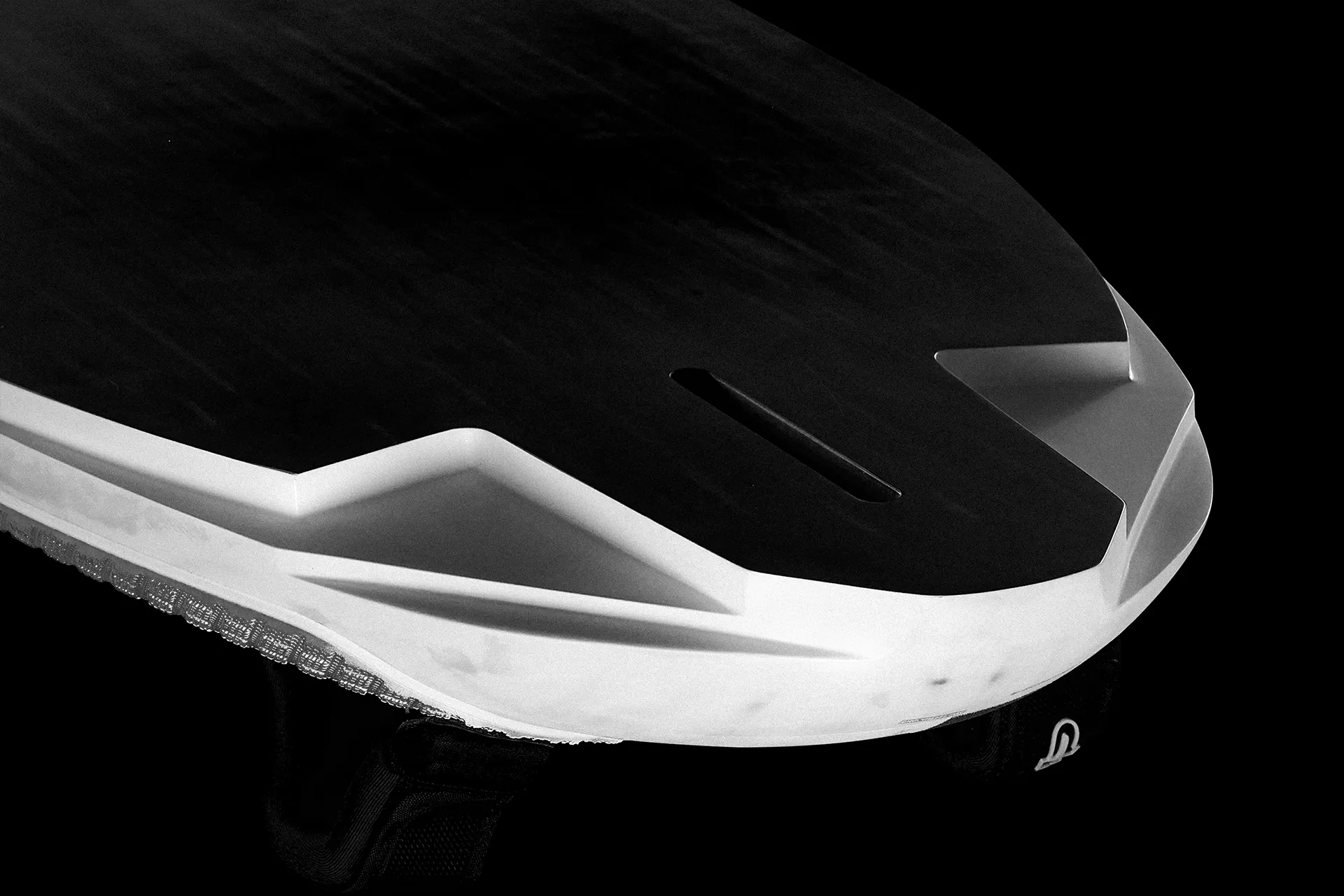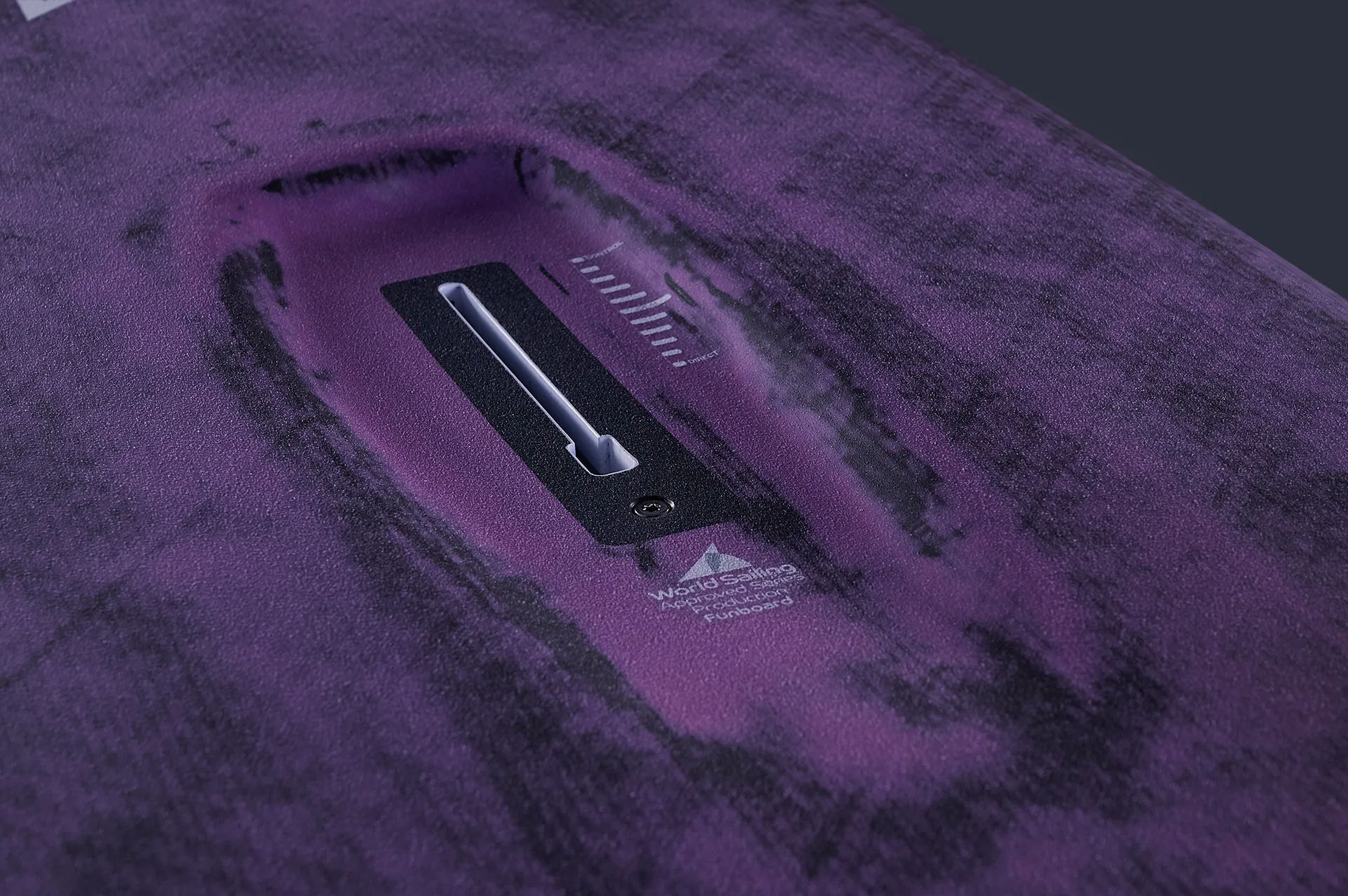 During the development, the hull’s aerodynamics were optimized, particularly in the nose area. A redesigned rail and deck shape in front of the mast base ensures smooth airflow over the deck, keeping the board stable and efficient even in challenging conditions. Towards the tail, the outline and deck shape were smoothed, especially around the back footstrap, offering a more connected feel and a comfortable stance.