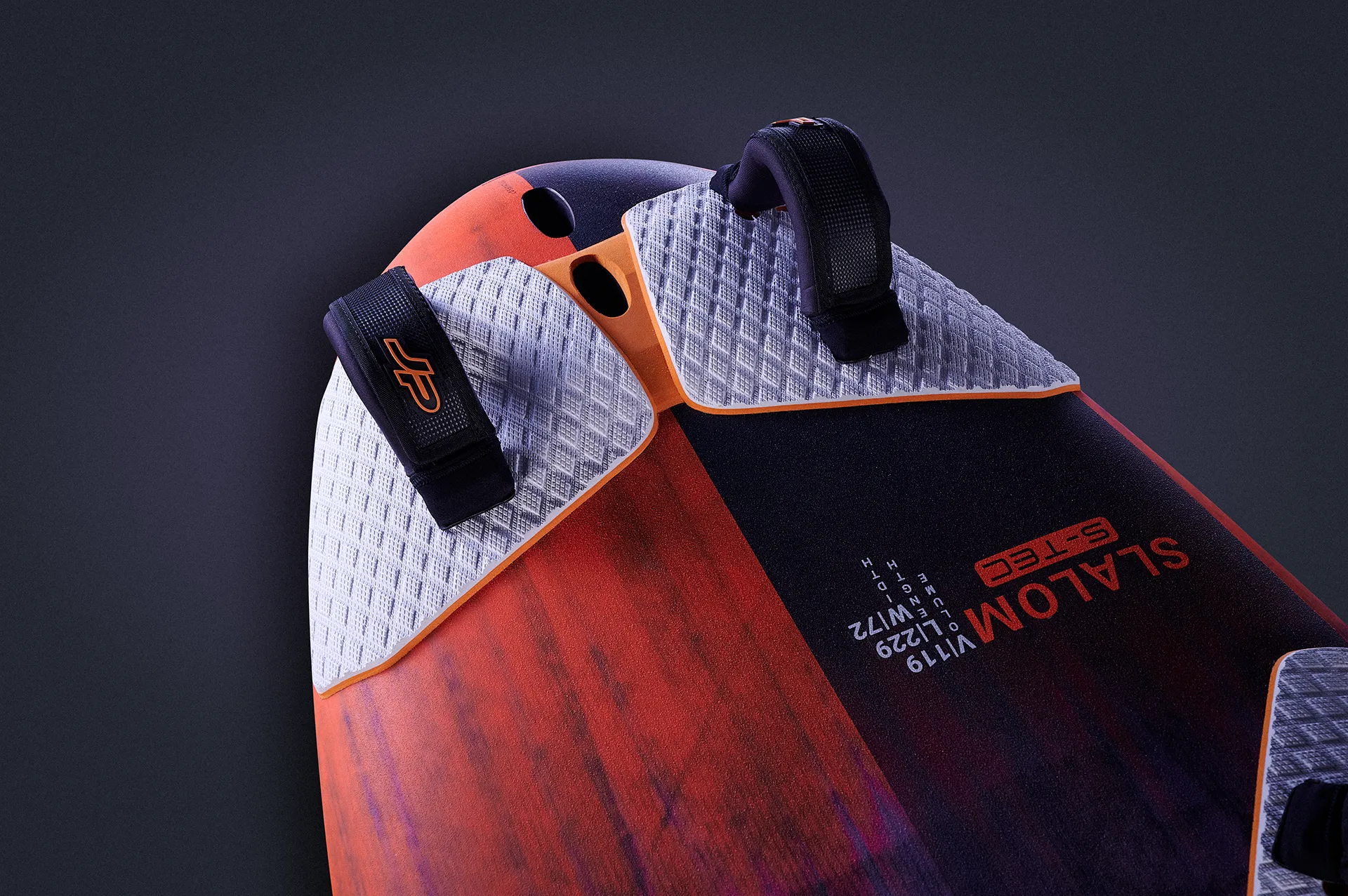 Control and top speed – that’s what it takes to reach the podium. JP’s five Slalom boards are built for blasting at PWA competition speed, rounding jibes at full speed, and maintaining precise control across a wide range of conditions. Their stability also benefits lighter riders, keeping them in control even when fully overpowered, while allowing rapid acceleration to top speed. The new SL 72 pushes performance even further: optimized hull aerodynamics, refined rail and deck shapes, and a higher water position let it slice through chop effortlessly, accelerate faster, and stay rock-solid through the most demanding jibes. S-TEC construction combines a striking look with reduced weight and enhanced stiffness, enabling earlier planing, easier handling, and higher top-end speed. Whether chasing the podium or pushing personal limits, the SL delivers the perfect balance of power, responsiveness, and confidence.