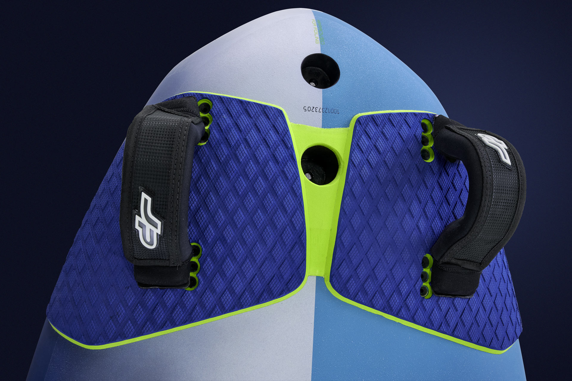 DUAL TAIL OUTLINES – individually adjusted to each board size. The bottom outline features a new cut-out configuration reducing the wetted surface and creating multiple release points for low drag and high speed. The deck outline over the cut-outs is wider and due to the further outboard rear strap position the rider can load more power onto the fin for more control and speed.