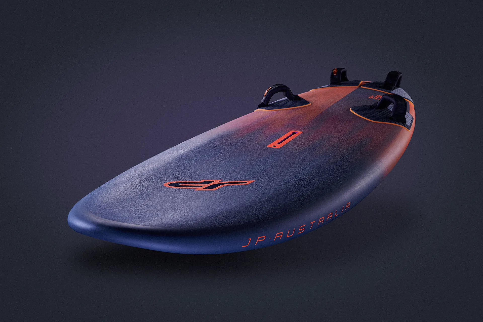 All of these shape features make these boards the best planing and performing Super Sport line JP has ever had and the fastest freeride line in our range. Most impressive – making them a standout in the free-race class – are the smoothness of ride, comfort and ease. Consequently, the boards can be set to top speed mode easily and maintain this high level with little effort. As a cherry on the cake, the thin rails and low tail volume make initiating jibes at this high speed very smooth. These free-race designs feature JP‘s best balance between easy sailing and performance: