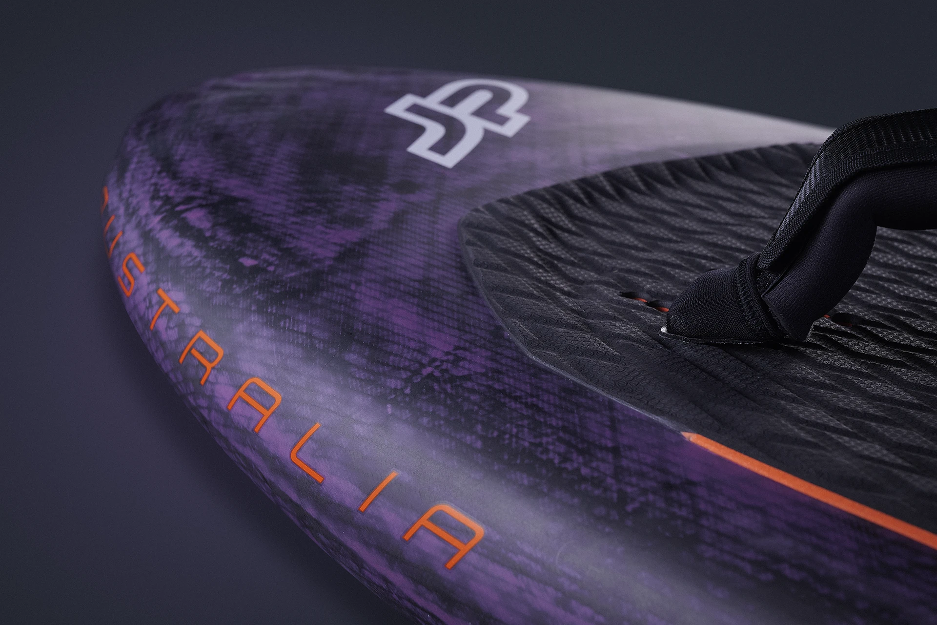 The S-TEC construction takes the board to the next level: a injection-moulded EPS core keeps the centre ultra-light, while the denser outer shell has the benefit of increased strength and reduced resin and water absorption. The core is wrapped in a full PVC sandwich with featherweight biax carbon, plus a UNI-directional carbon patch covering the standing and foil areas. A special lamination method ensures a pre-preg resin-to-fibre ratio for maximum stiffness at minimal weight. This creates a featherweight Triax carbon PVC sandwich shell for the ultimate in composite board construction. Innegra rail and heel reinforcements protect against heavy landings. A brushed-off topcoat covering the carbon saves additional weight while giving the board its sleek, performance look. The handle has been removed to reduce unnecessary grams and deliver a pure, competition-oriented setup.