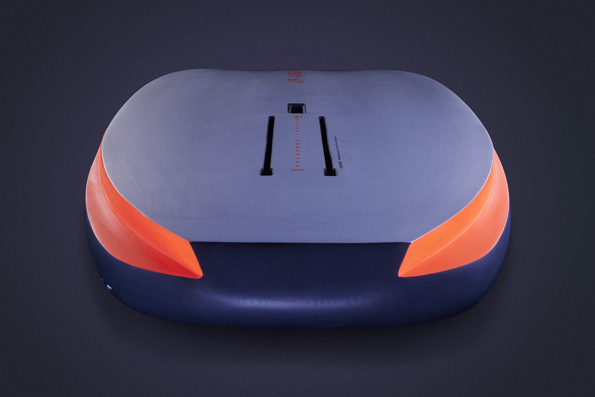 In flight, the extra tail rocker raises the nose resulting in a better flight position of the board. This creates more clearance when flying so you can push harder on the foil when going upwind without a concern that the board might catch some chop. On top of that it creates more pop for jumps and provides a more comfortable stance. Unique tail cut-outs improve pumping efficiency, reduce drag on touchdowns, and allow tighter turns without the tail catching.