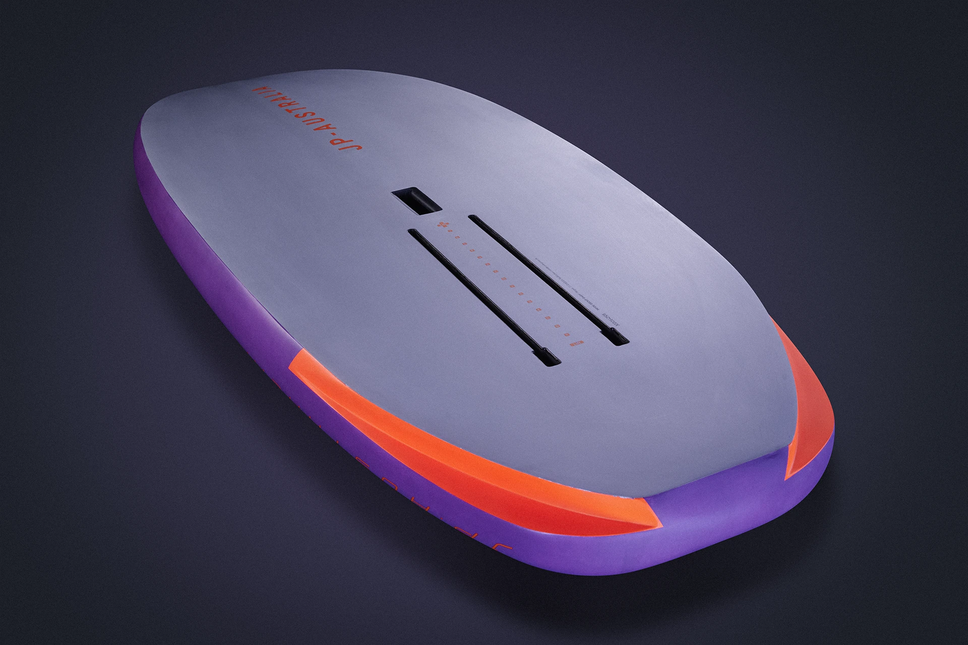 The updated track system makes foil setup faster and easier than ever. Large openings let you drop the plate nuts directly into the tracks, slide them into place, and tighten. Removing the foil is just as simple – loosen, slide back, and lift off. All boards come equipped with four standard plate nuts for perfect fit, load distribution, and secure thread engagement. The mirrored positioning scale on the deck EVA pad allowing you to know exactly where your foil is placed in relation to your back foot position while the fine corduroy pad ensures grip and comfort.